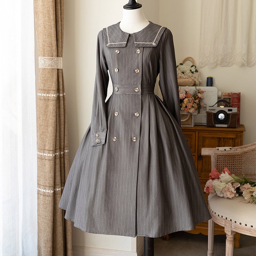 SEASONZ ワンピース レトロ クラシカル 長袖 上品 Forestシリーズ ストライプ クラロリ 大人かわいい ガーリー