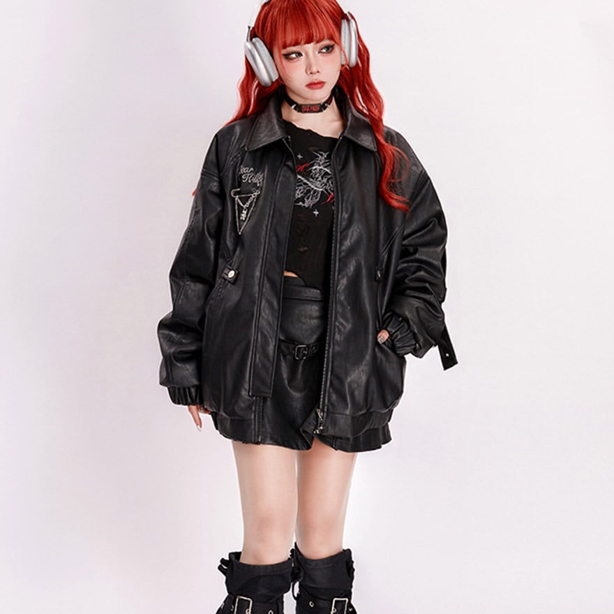 SEASONZ ゴスロリ ミニスカート レザースカート プリーツ パンク PUレザー 暗黒系 ダークゴシック
