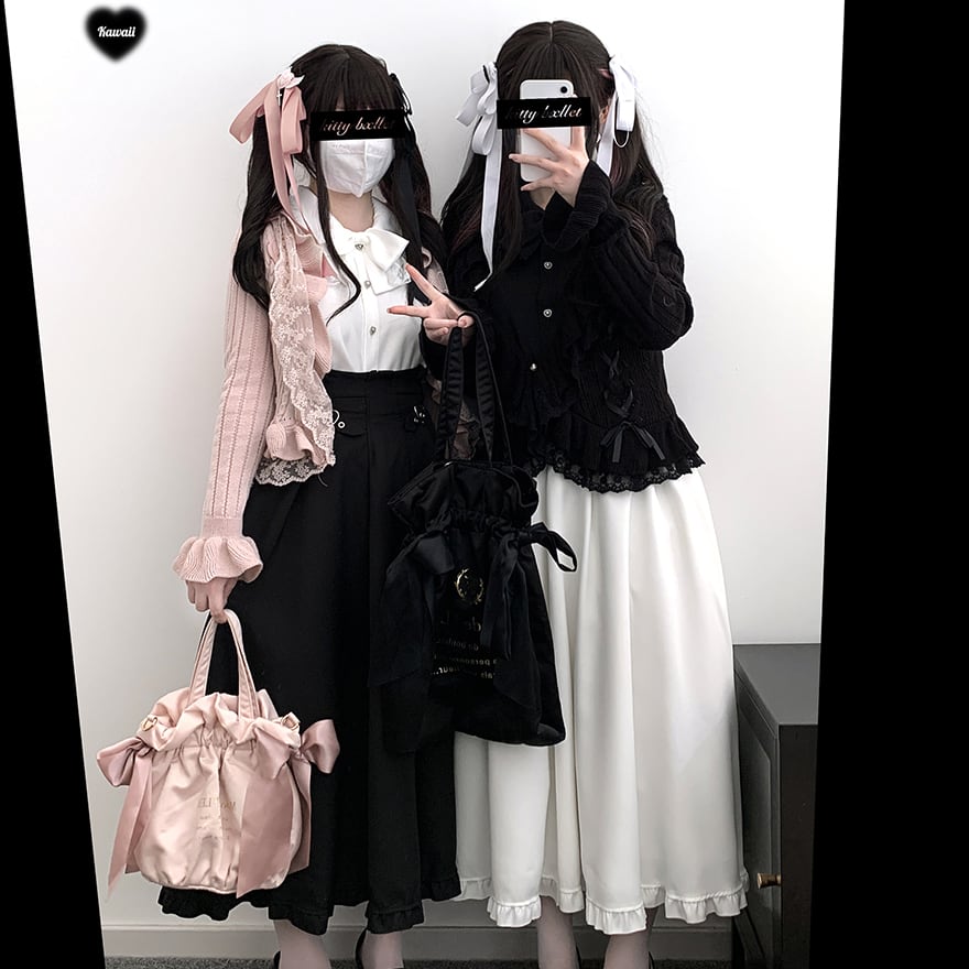 SEASONZ KittyBxllet 地雷系 フレアスカート ロング丈 ハートバックル フリル 地雷系 地雷女子 ダークゴシック レース