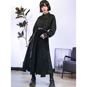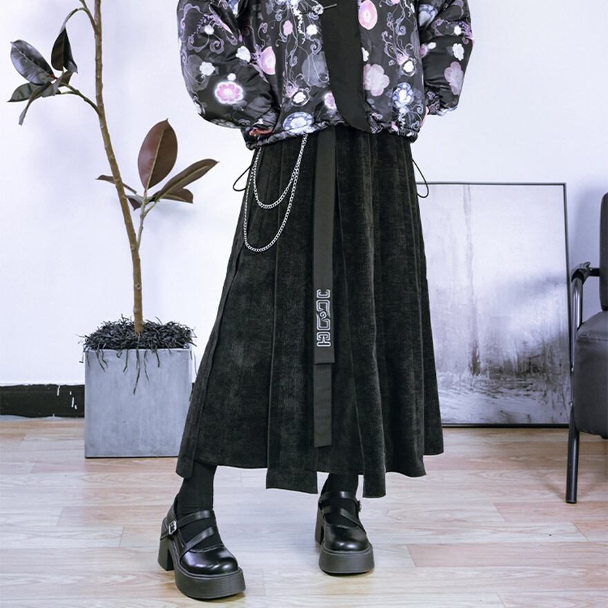 SEASONZ 古怪舎 スカート チャイナ風 ロングスカート プリーツ チェーン ウエストアクセサリー 大人かわいい エレガント 普段着使い 大人増し ダークファッション