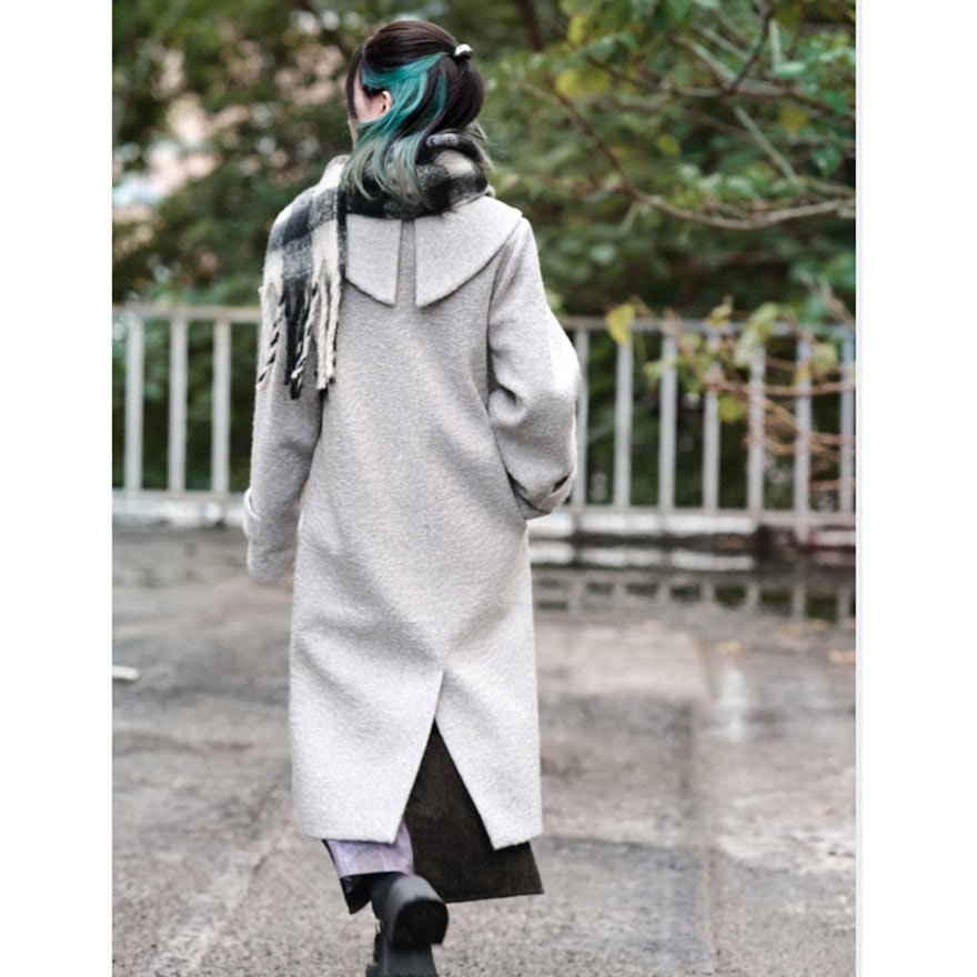 お洒落な刺繍が入ったロング丈のウールコートです。
