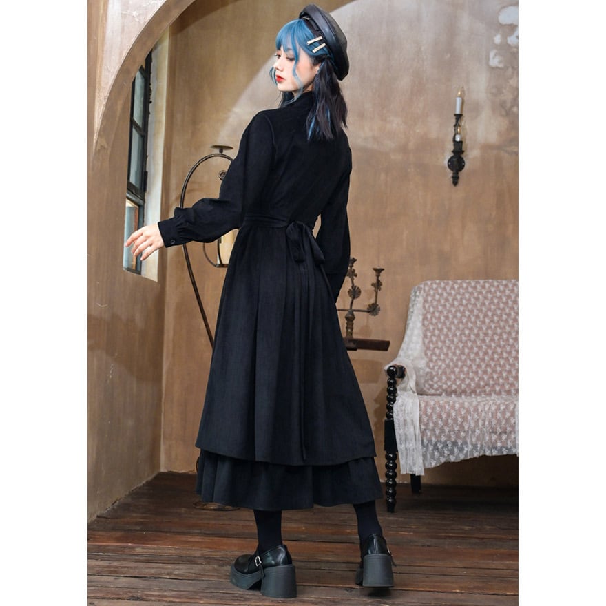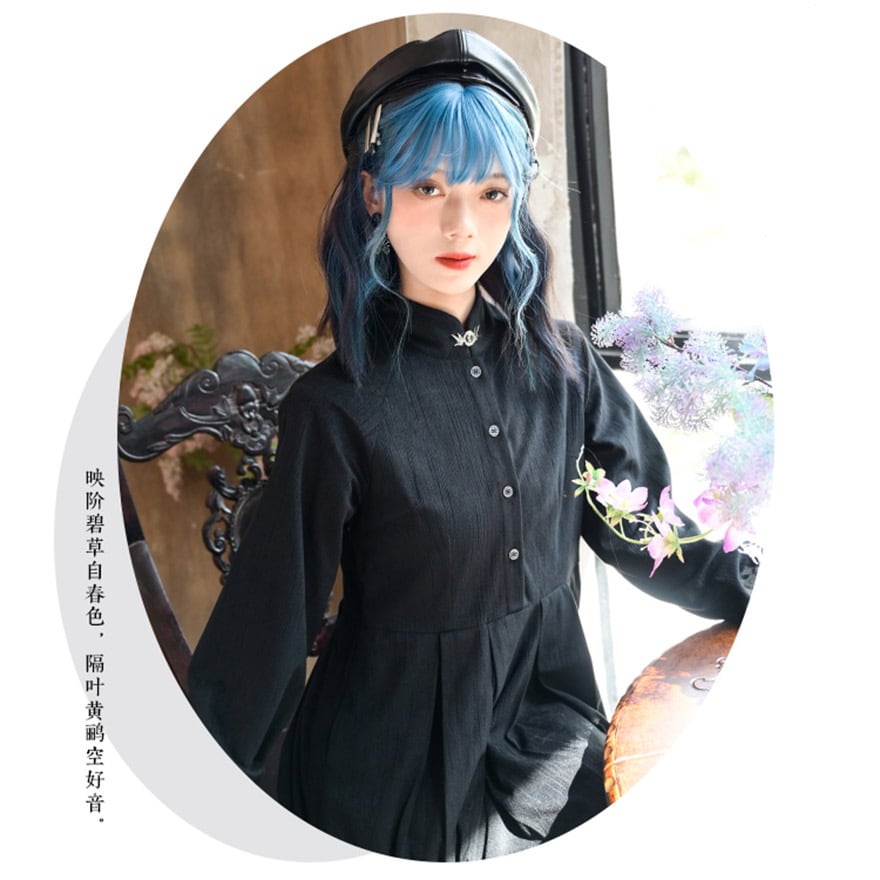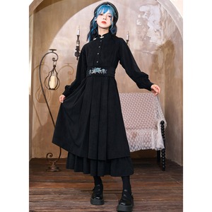 SEASONZ 古怪舎 チャイナ風 ワンピース ロングスカート スタンドカラー 長袖 刺繍 中華風 大人かわいい エレガント 普段着使い 大人増し ダークファッション