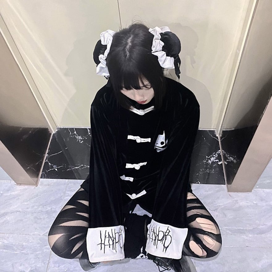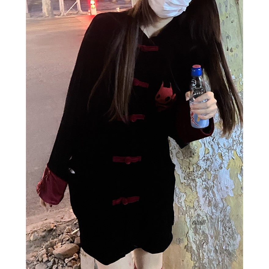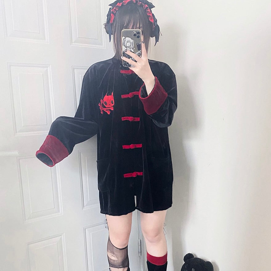 SEASONZ 地雷系 地雷女子 チャイナ風 ジャケット 羽織り 長袖 コート ベルベット 中華服 ダークファッション 原宿スタイル