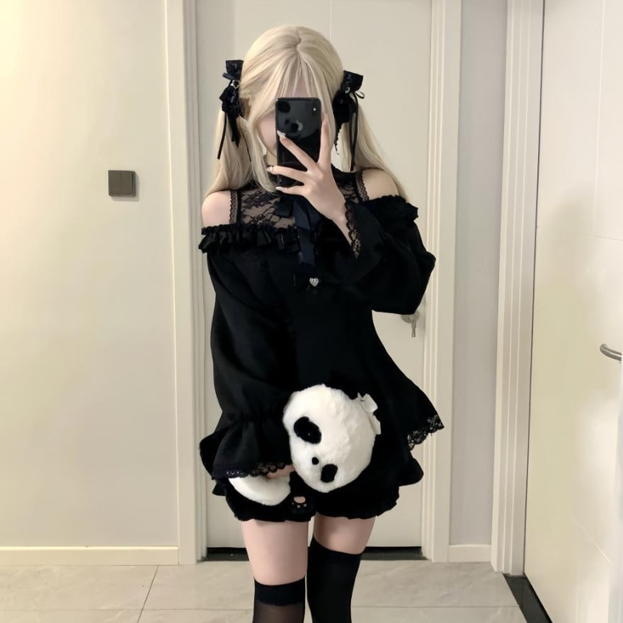 SEASONZ 地雷系 地雷女子 ゴスロリ ワンピース オフショル 原宿スタイル 病み可愛い ダークファッション
