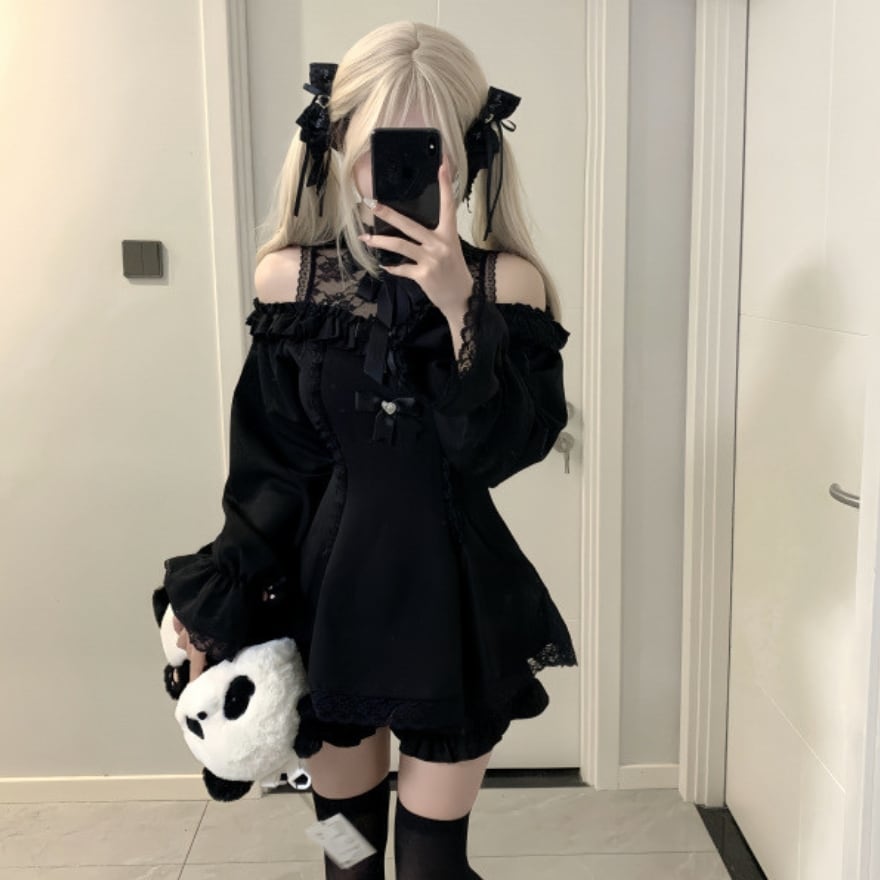 病み可愛いダークゴシックなオフショルワンピのオプションのミニスカです。