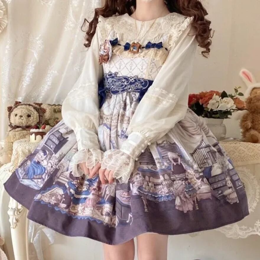 SEASONZ 納期45日 ゆめかわいい ファッション スイートロリータ ジャンパースカート ドレス 猫ちゃん 刺繍 フェアリーテール 甘ロリ ガーリー かわいい イベント ステージ衣装 原宿スタイル