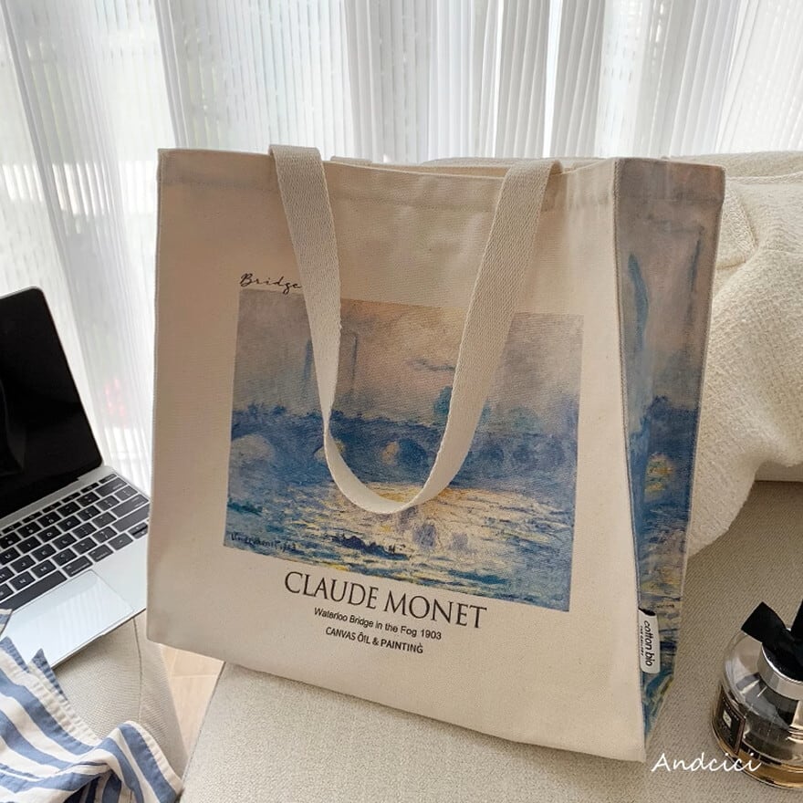 SEASONZ ファッション 油絵風 トートバッグ ANDCICI 帆布 モネ《ウォータールー橋》