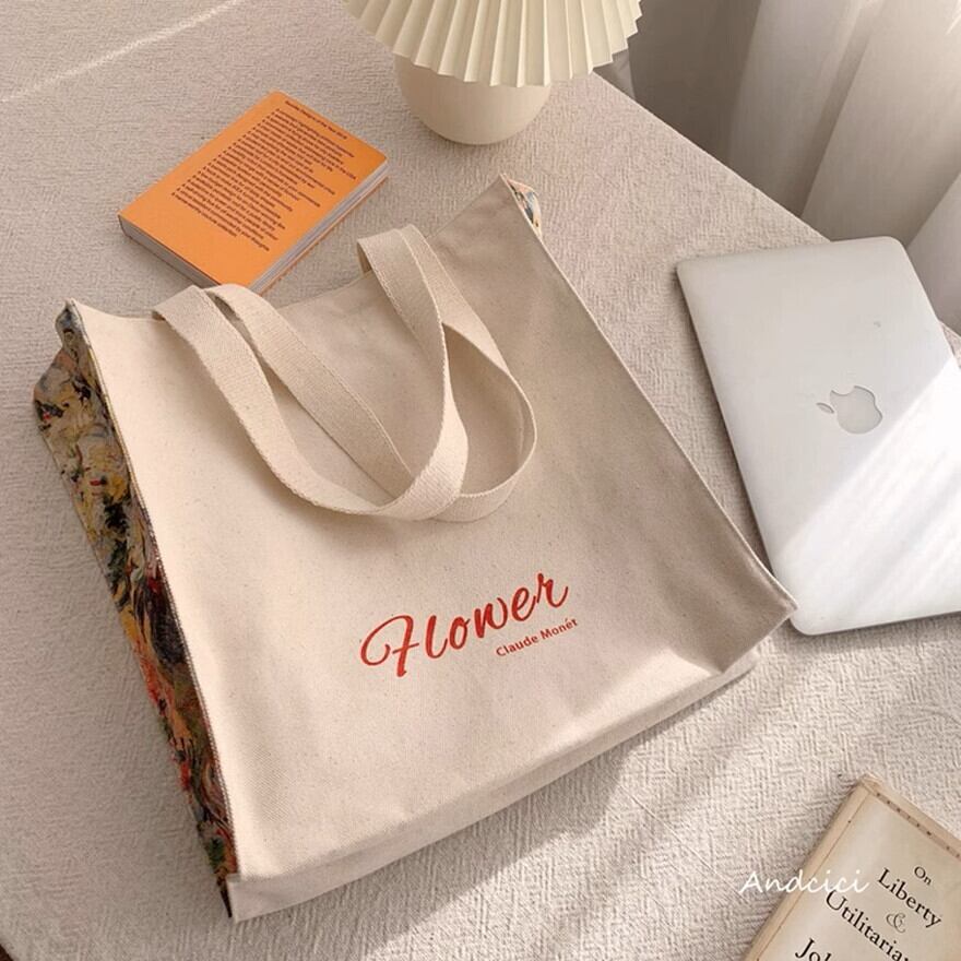 SEASONZ ファッション 油絵風 トートバッグ ANDCICI 帆布 モネ《フラワー》