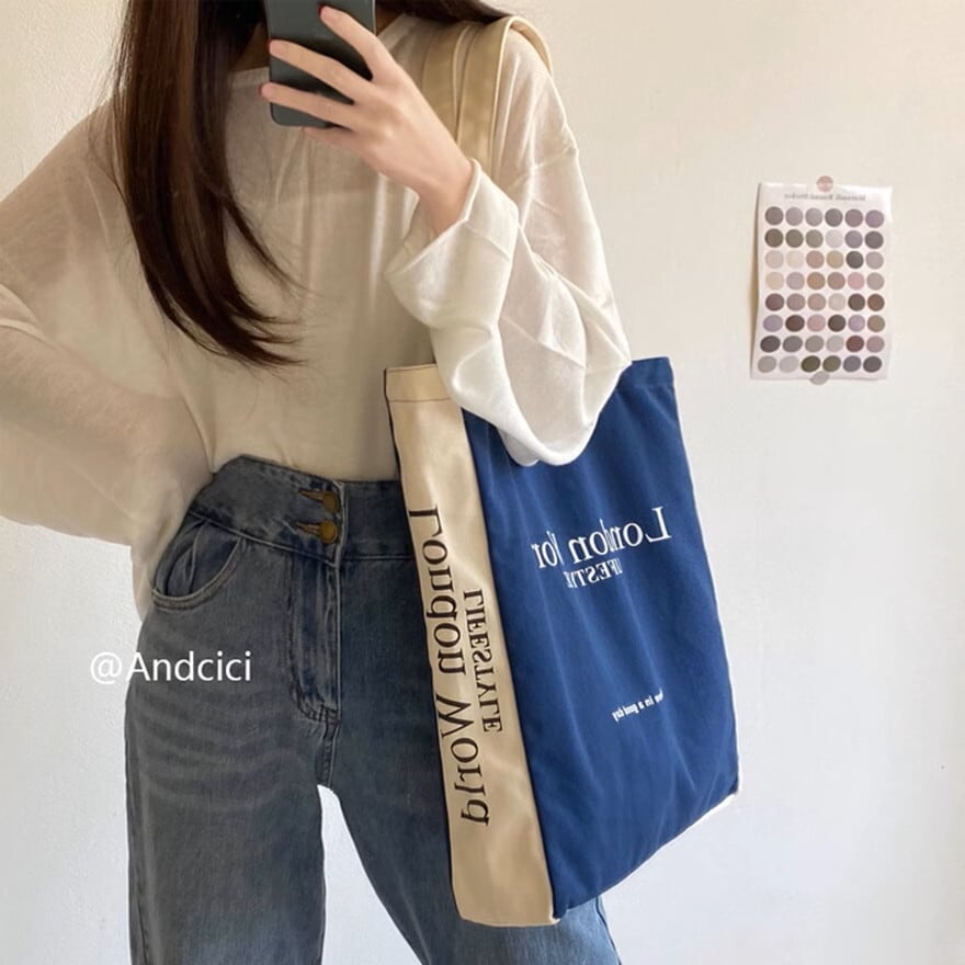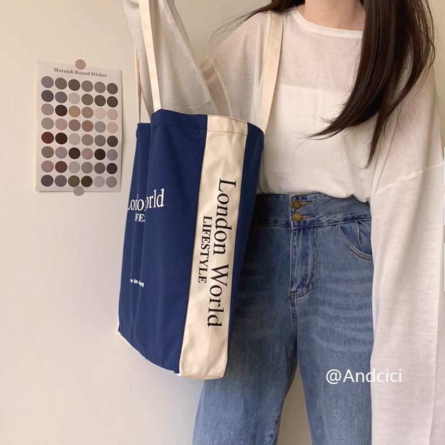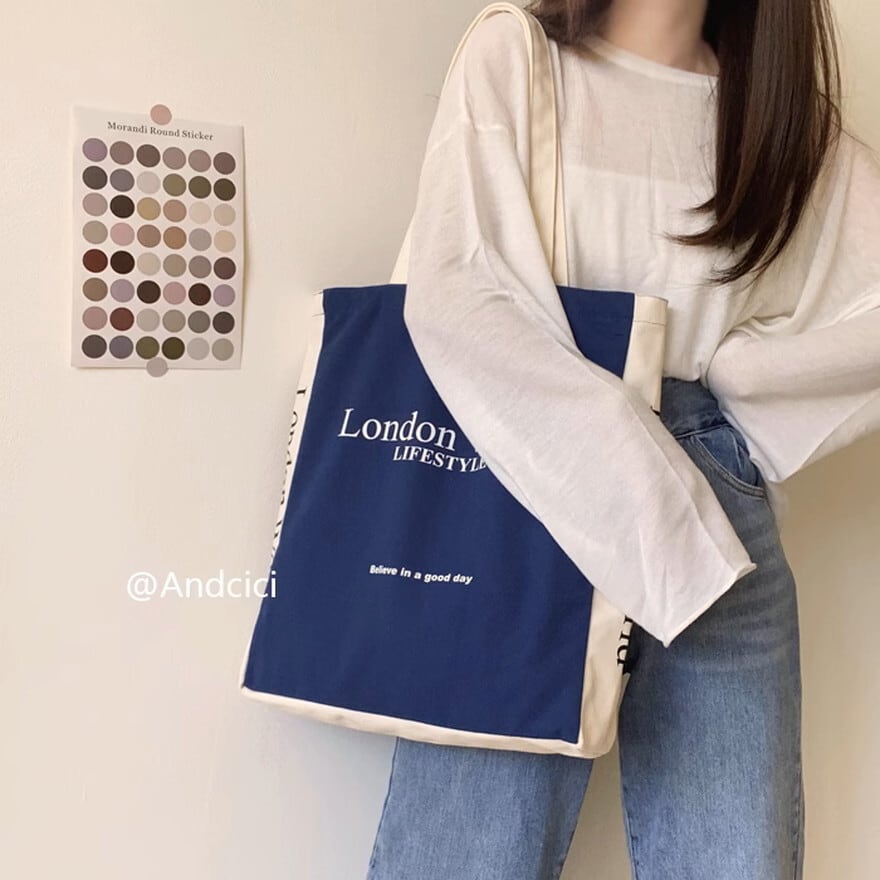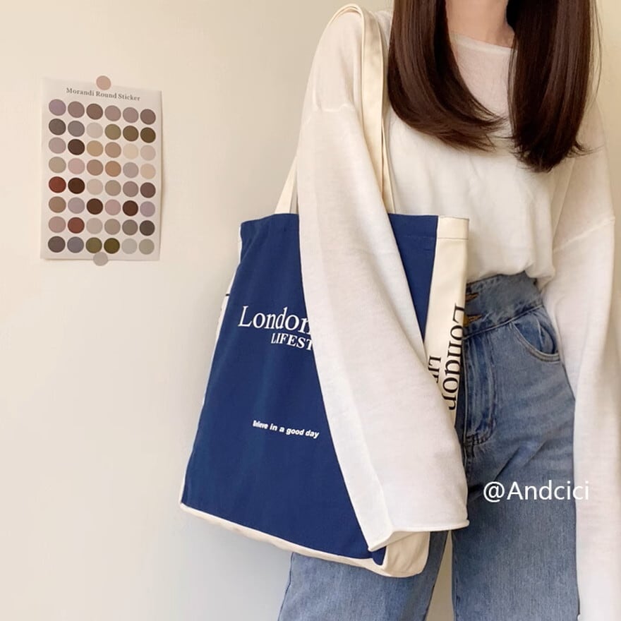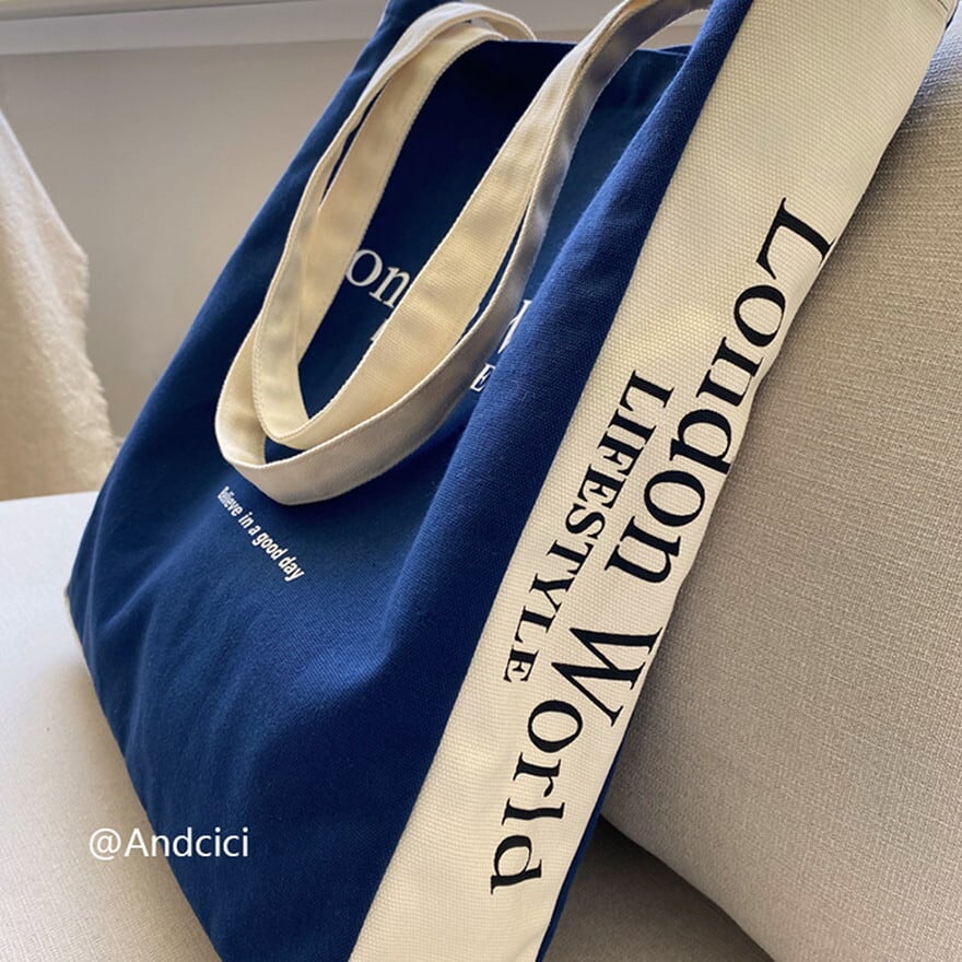 ロンドン英字ロゴのカジュアルなキャンパスバッグ、トートバッグです。