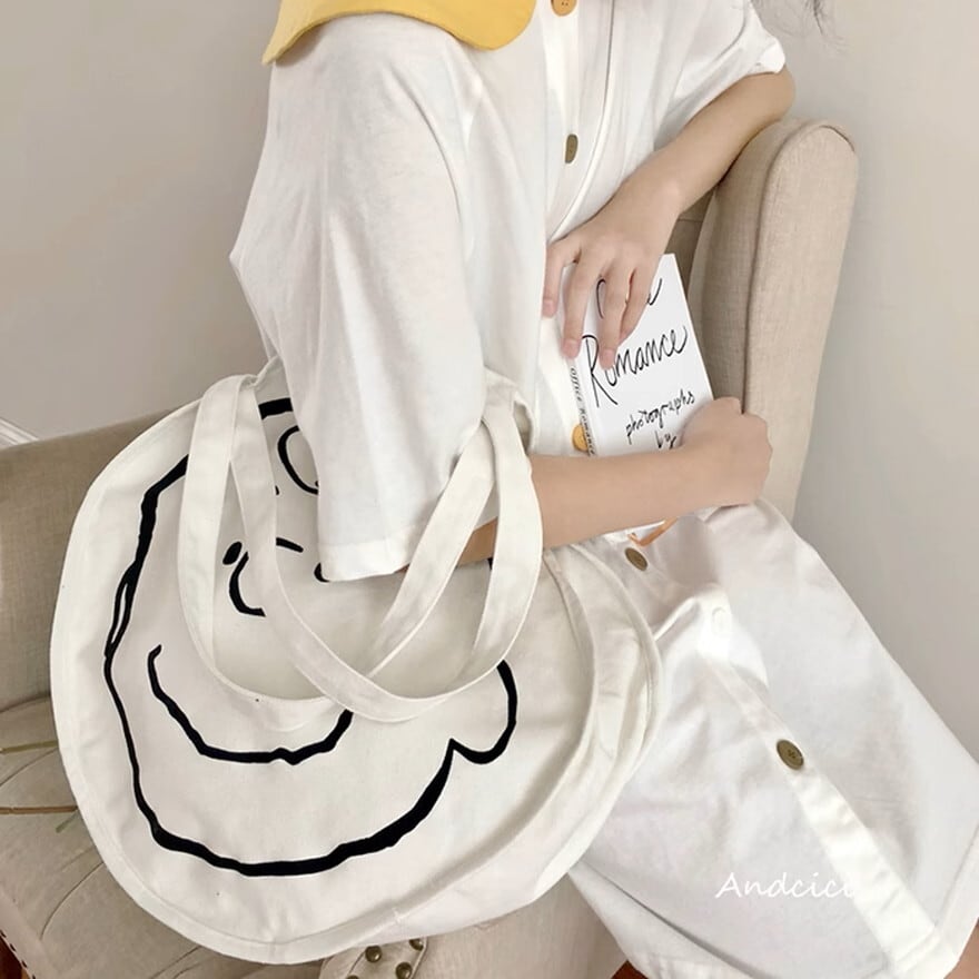 SEASONZ ファッション 油絵風 トートバッグ ANDCICI 帆布 スヌーピー チャーリー・ブラウン