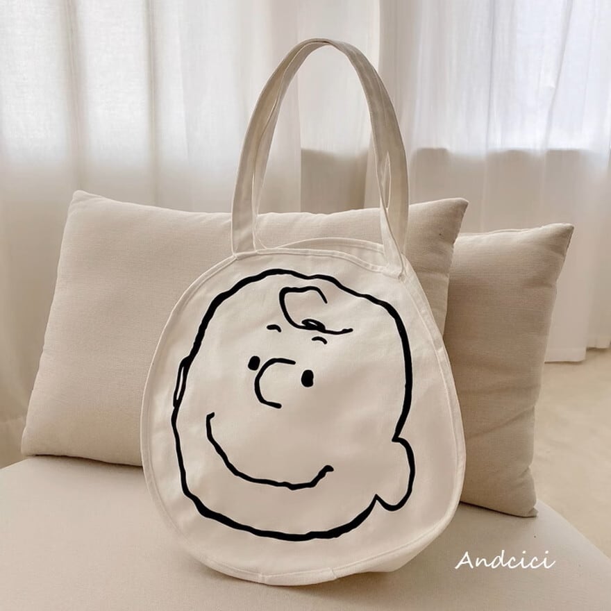 チャーリー・ブラウンの手書き風ビッグサイズトートバッグです。