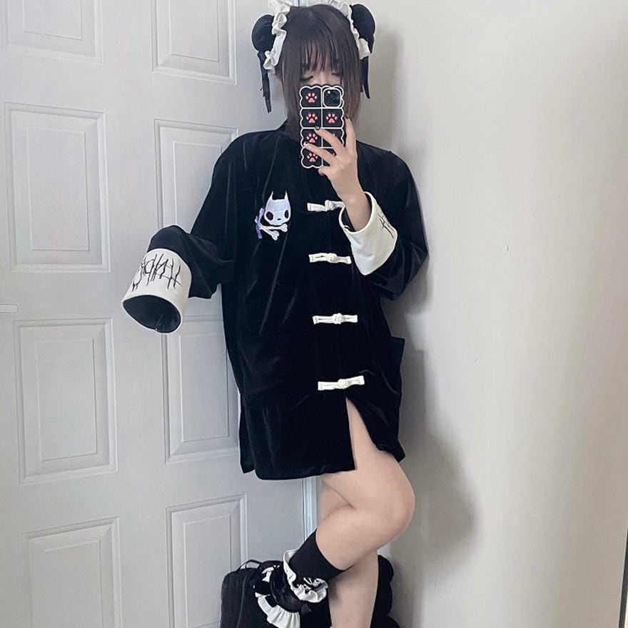 SEASONZ 地雷系 地雷女子 チャイナ風 ジャケット 羽織り 長袖 コート ベルベット 中華服 ダークファッション 原宿スタイル