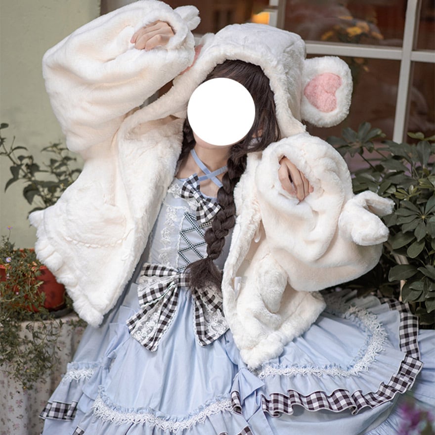 SEASONZ ゆめかわファッション ロングコート アウター ロング丈 ふわふわ 耳付きユキヒョウ 秋冬服 量産型 ガーリー