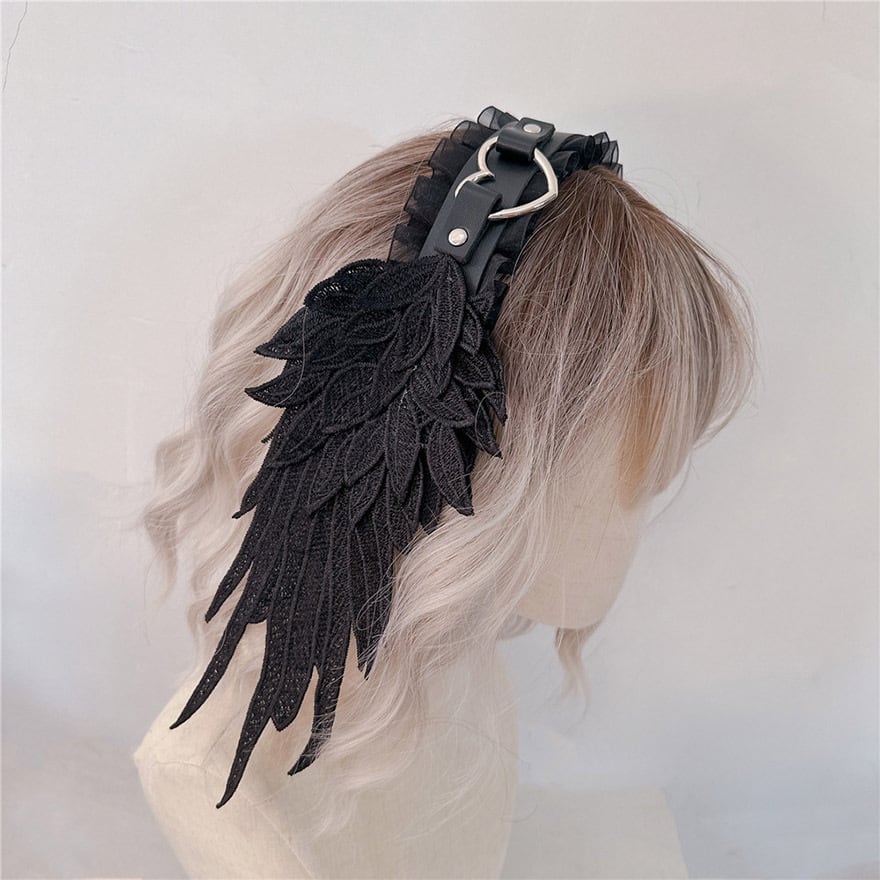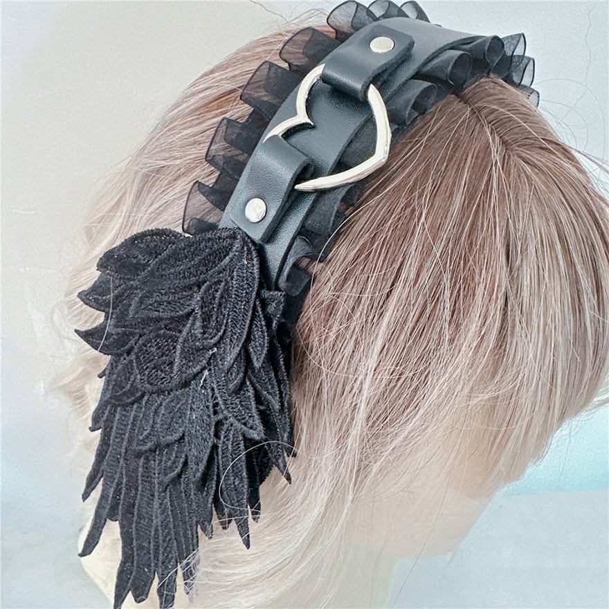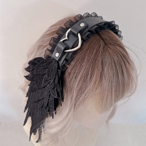 ハートバックルが可愛い、羽付きのヘッドドレスです。