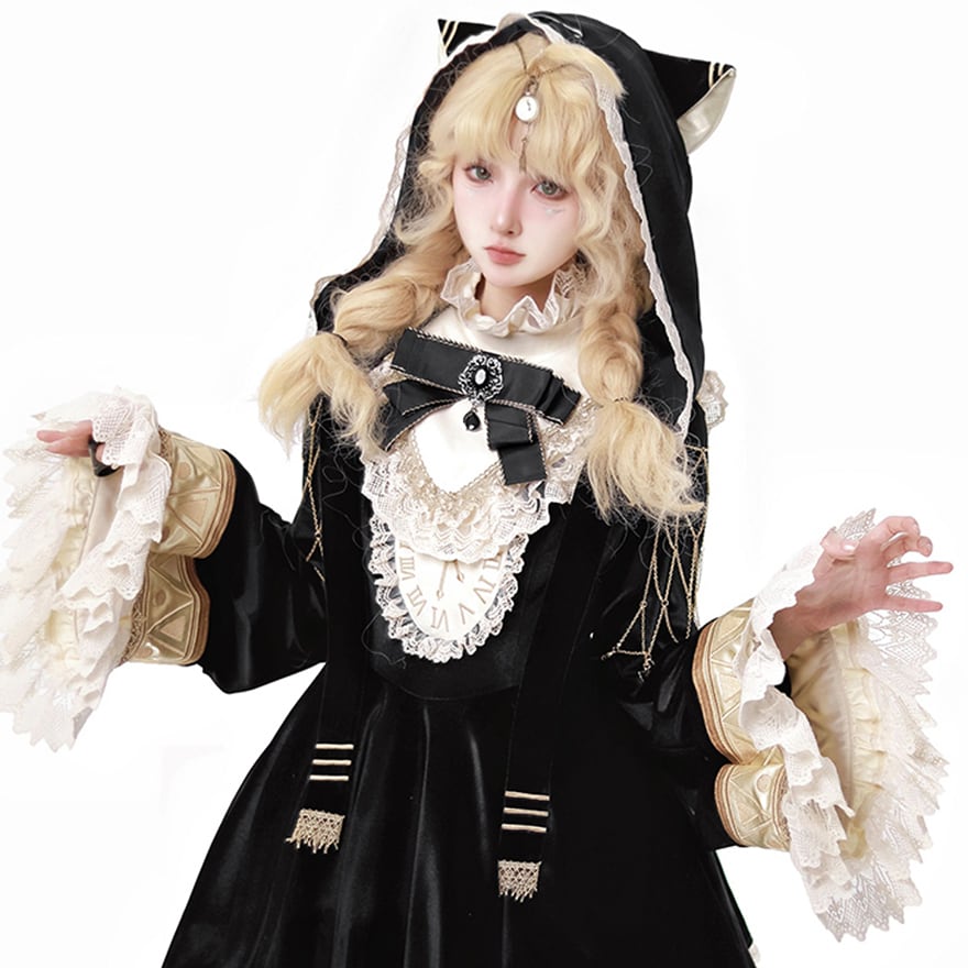 猫耳フードが可愛い、アンティーク調のワンピースセットです。