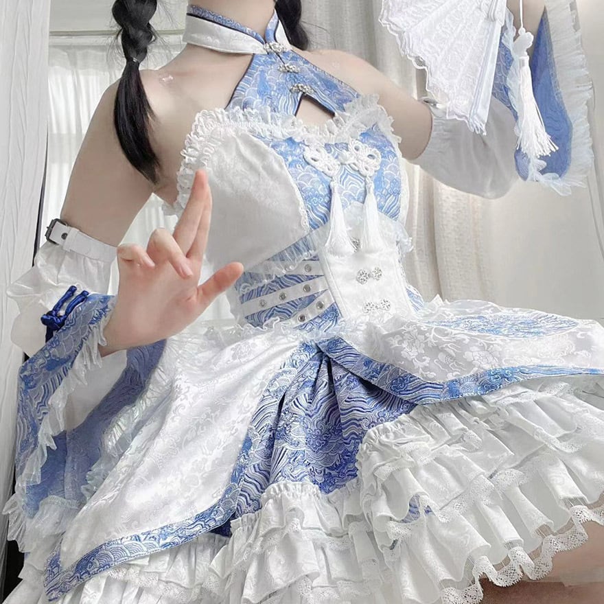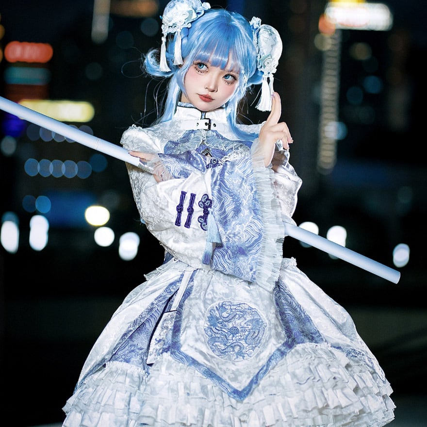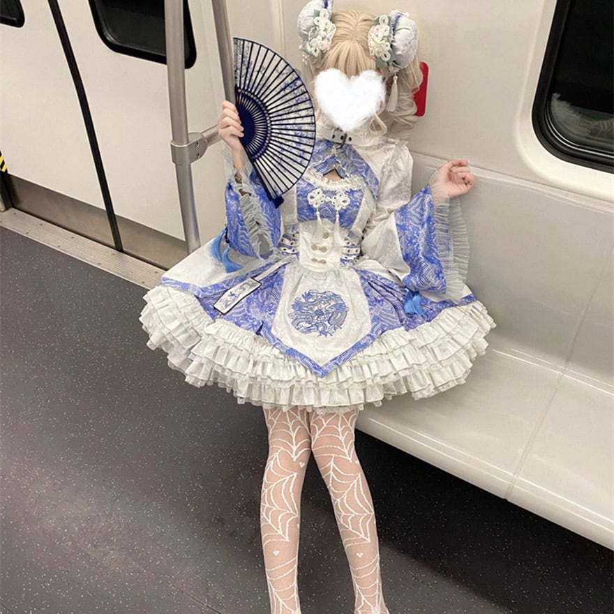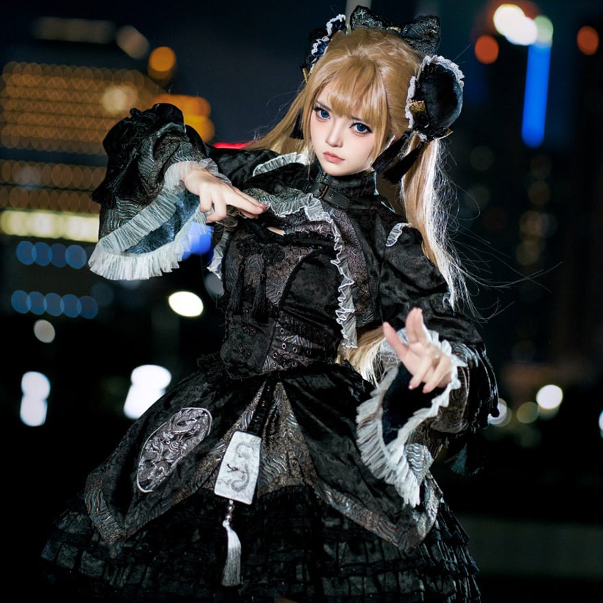 SEASONZ ゴスロリ 地雷系 セットアップ ワンピース ジャンスカ 羽織り ドラゴン刺繍 ダークゴシック 秋冬服 地雷女子 パンクファッション 原宿スタイル ゴシック イベント ステージ衣装