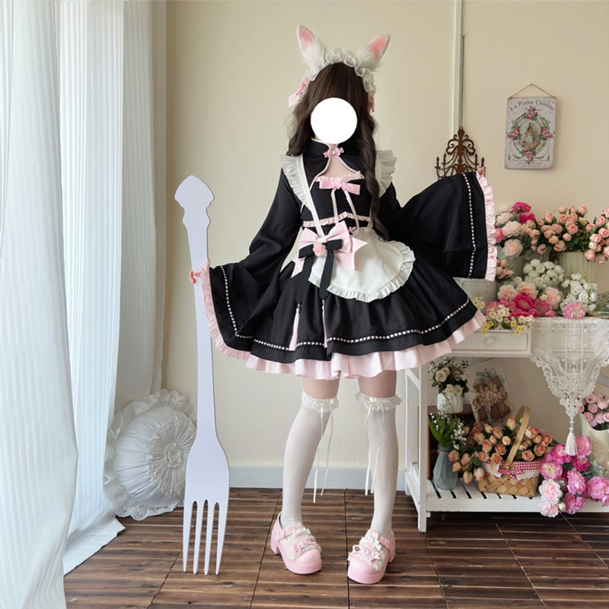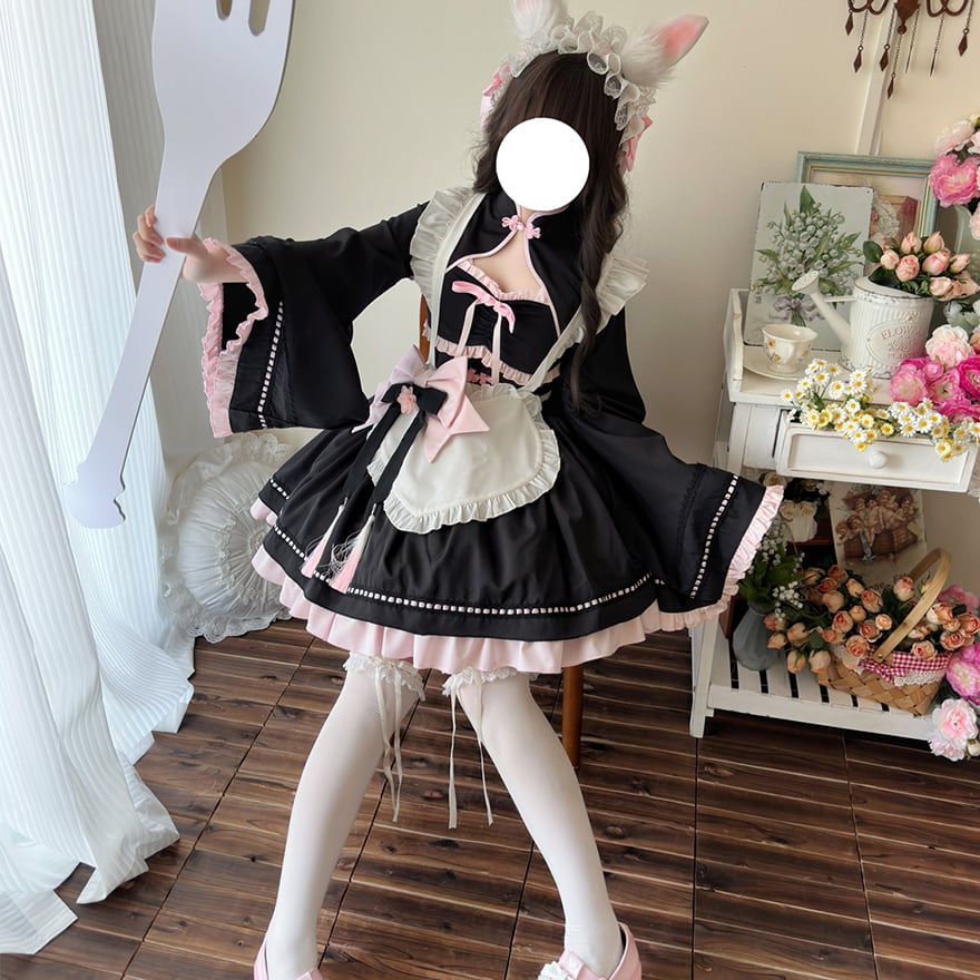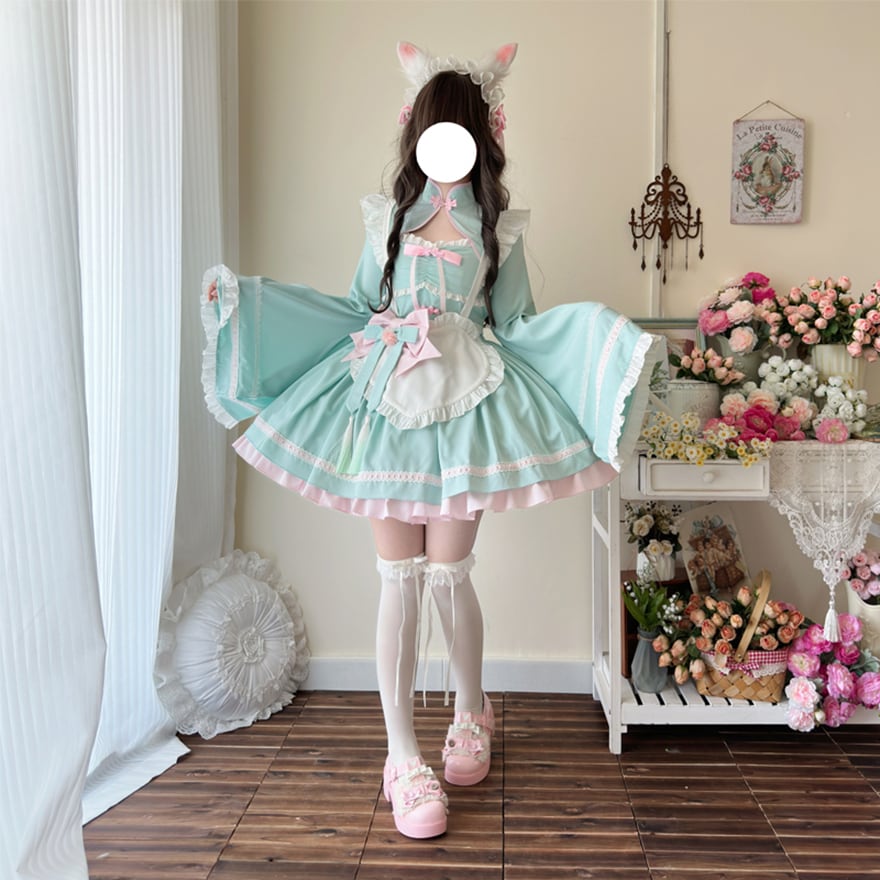 SEASONZ 地雷系 地雷女子 セットアップ ツーピース ワンピース 羽織り ジャケット 中華風 メイド服 和装 振袖 メイドワンピ コンカフェ メイドカフェ 秋冬服 量産型 ガーリー