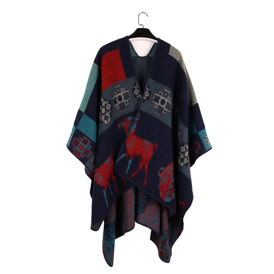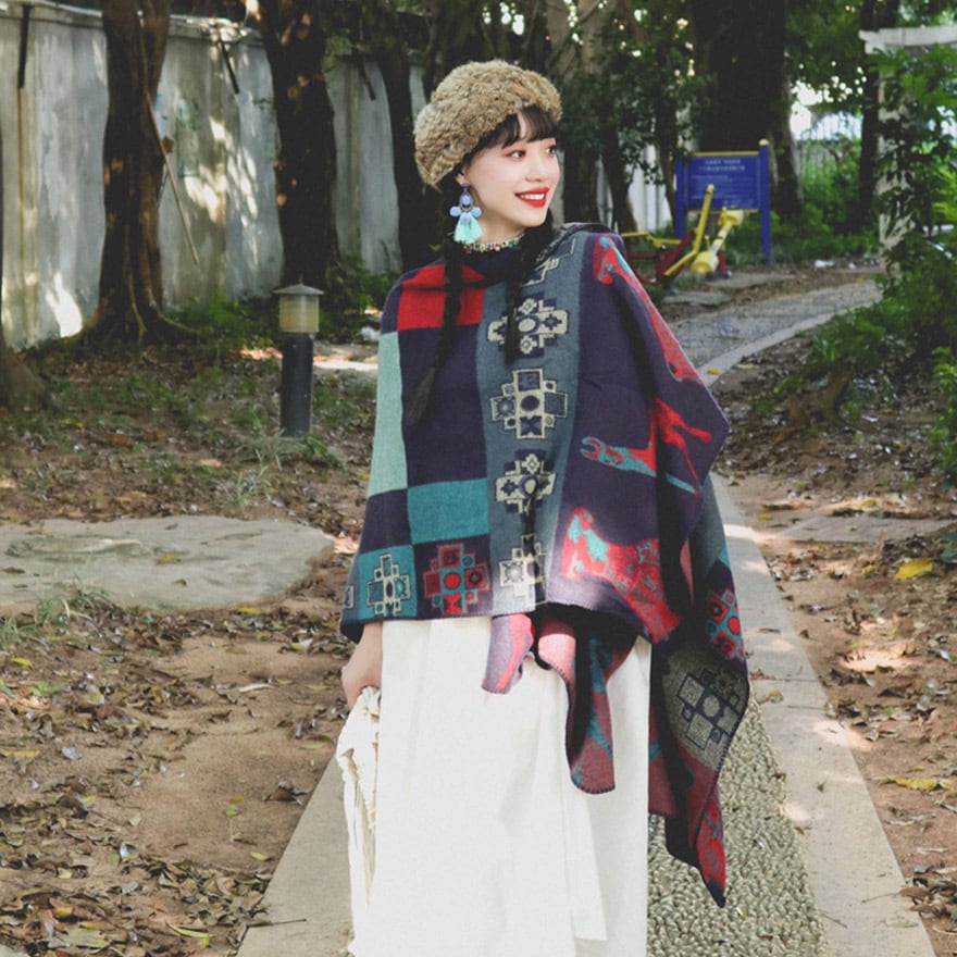 SEASONZ 民族調 ポンチョ 羽織り ショール ストール ケープ エスニック 大人増し 秋冬服 カジュアル