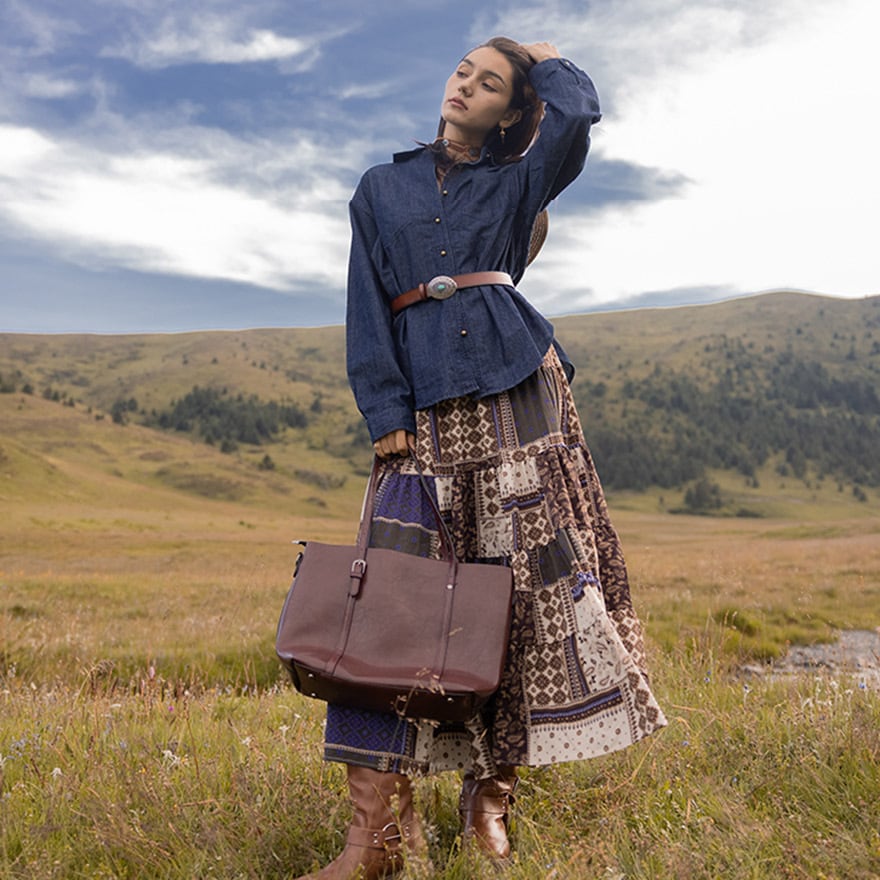 エスニック風のデザインがお洒落なロングスカートです。