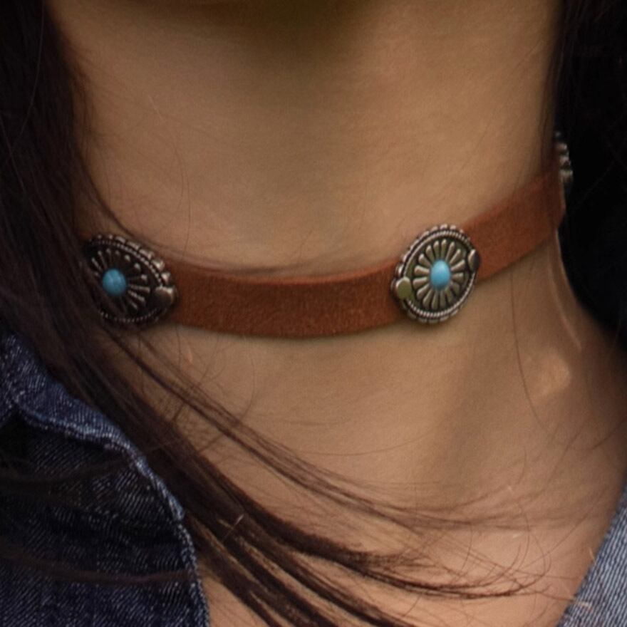 SEASONZ 民族調 チョーカー 首飾り フェイクレザー ターコイズ ヴィンテージ風 エスニック 大人増し 秋冬服 カジュアル