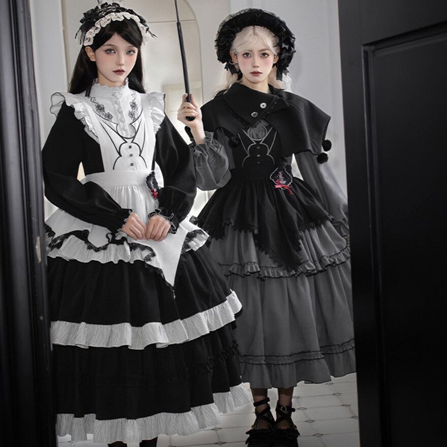 SEASONZ ゴスロリマント ケープ ぽんぽん 羽織り 肩掛け PUJI ダークゴシック メイドワンピ エプロン メイドカフェ コンカフェ