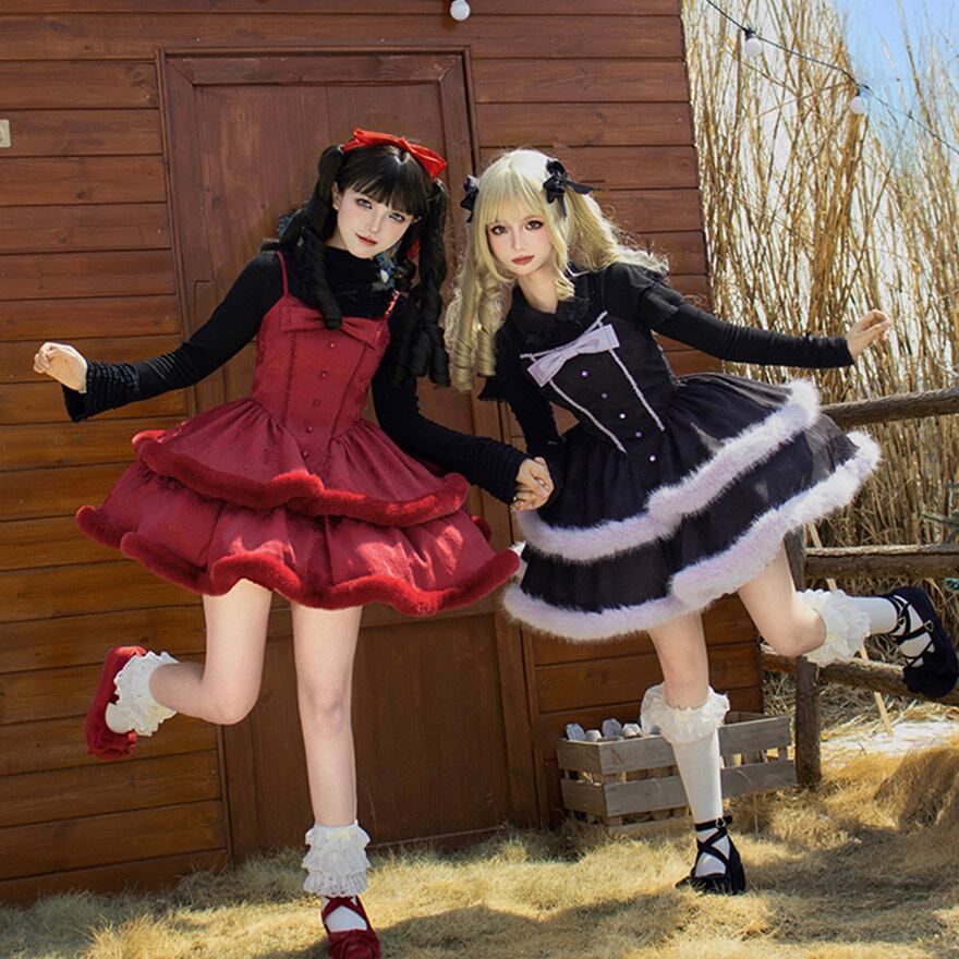 SEASONZ PUJIオリジナル クラロリ ワンピース キャミワンピ リボン ふわふわ ミニスカート ストラップ 切り替えスカート クリスマス パーティ イベント衣装 ガーリー おしゃれ増し lolita