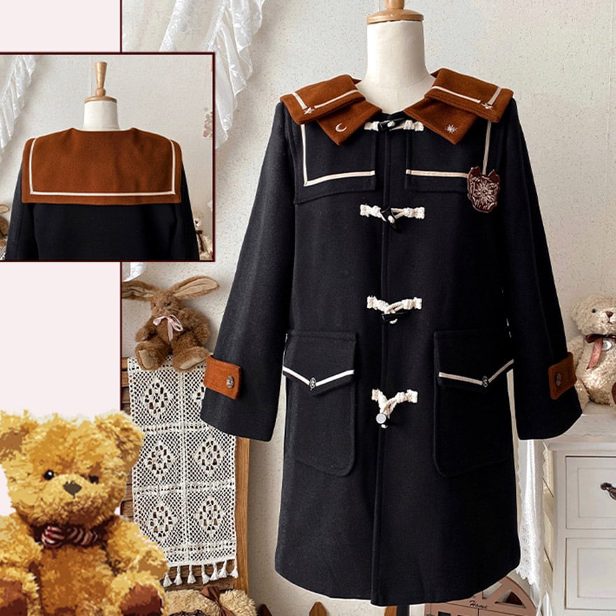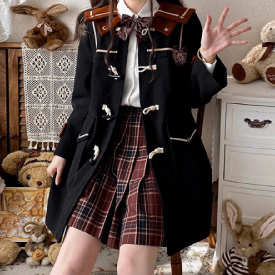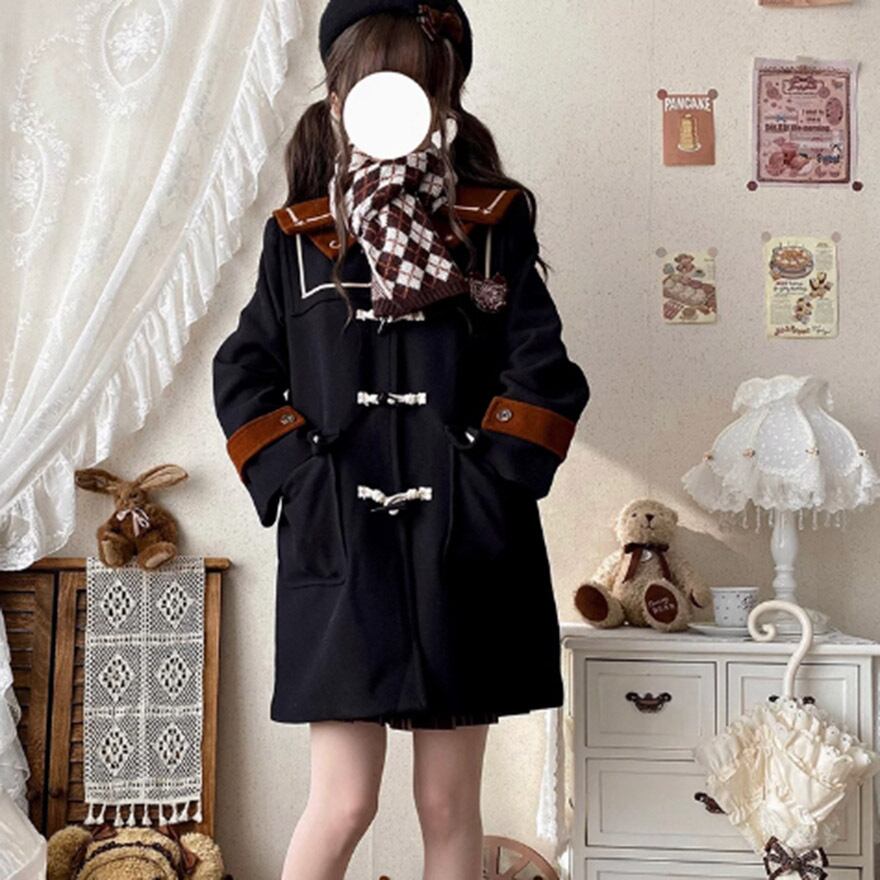 SEASONZ ゆめかわいい ダッフルコート ウール ツイード 羽織り アウター ソックス付き 秋冬 ホーンボタン JKロリータ 学園風 量産型 ガーリー lolita