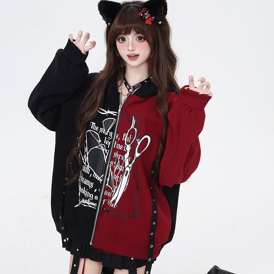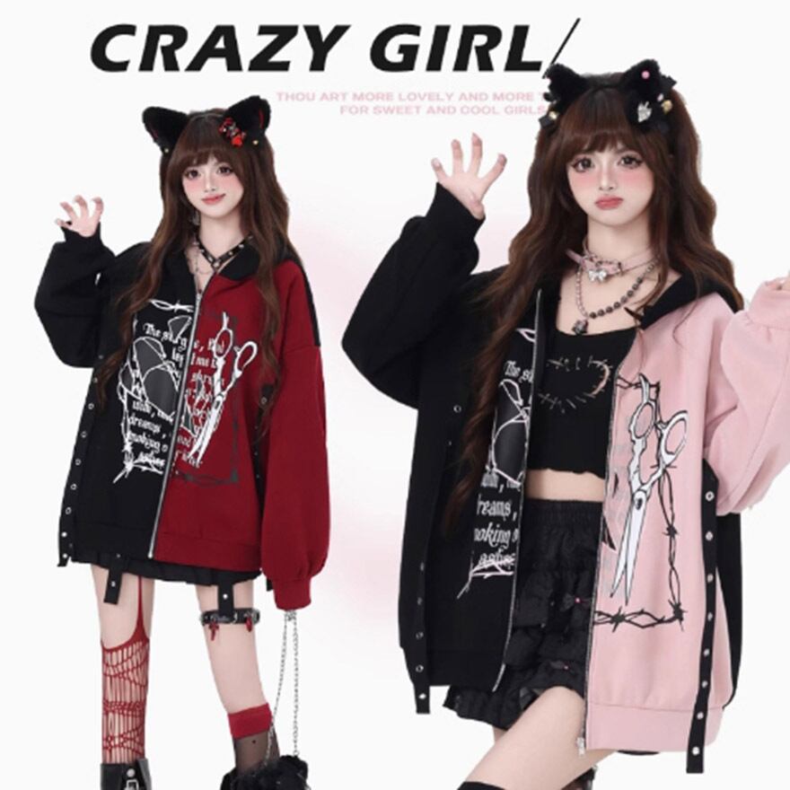 SEASONZ 地雷系 CRAZYGIRLシリーズ ジャケット バイカラー フード付き ZIP 病み可愛い ダークファッション パンク ロリパン 地雷服 量産型
