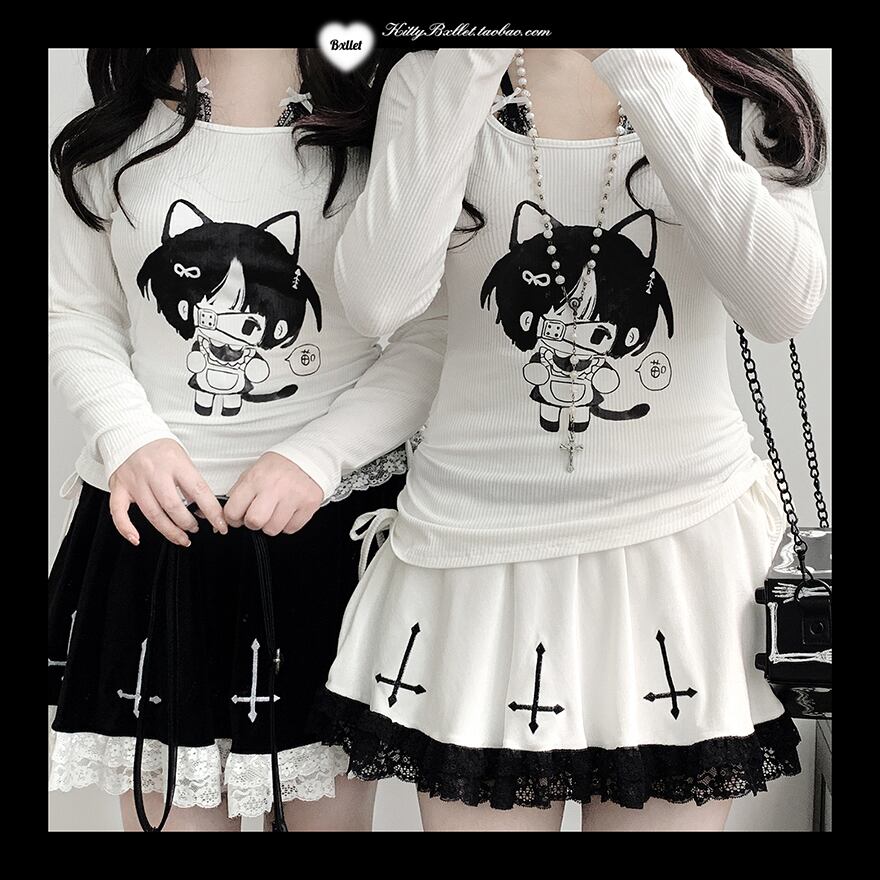 SEASONZ 量産型 ミニスカート レース 十字架 地雷 KittyBxllet 秋冬服 甘め ろりぃたふぁっしょん ロリィタ服