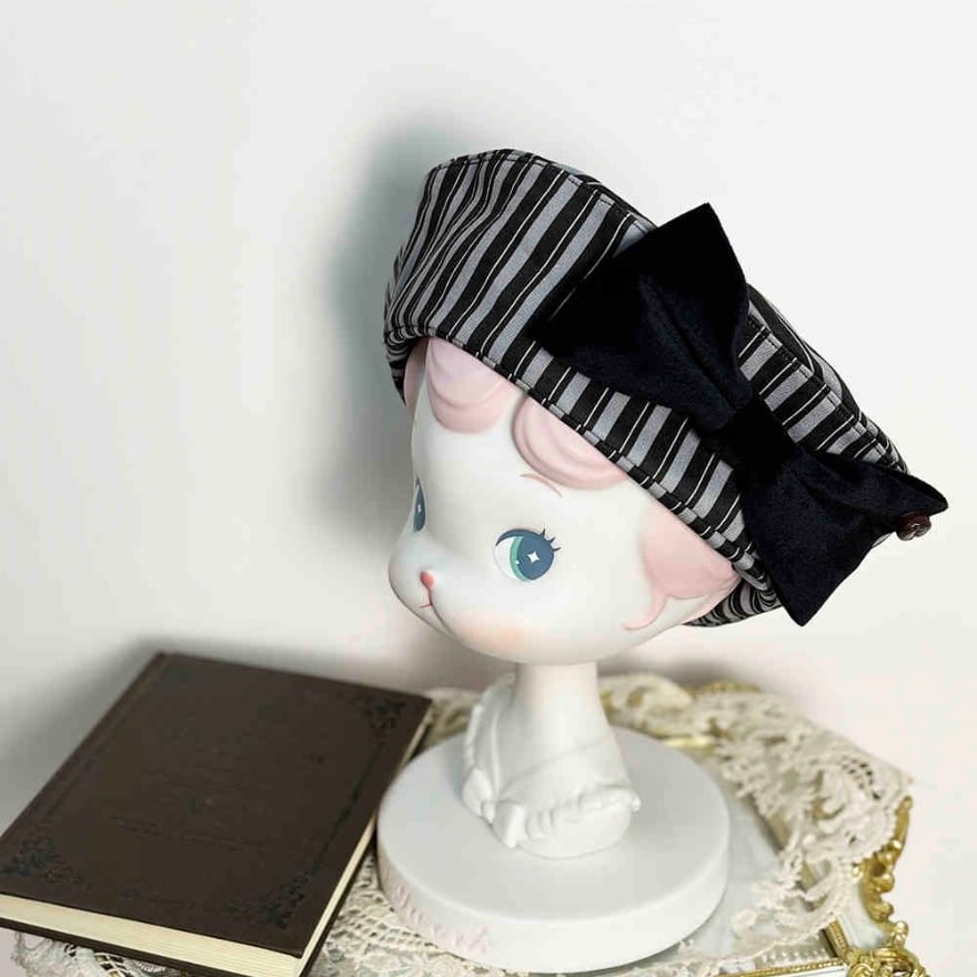 SEASONZ 予約商品 ゴスロリ ハット 帽子 長つば ストライプリボン エレガント ダークゴシック 病みかわいい 原宿系 ゴスロリ服 ロリィタ服