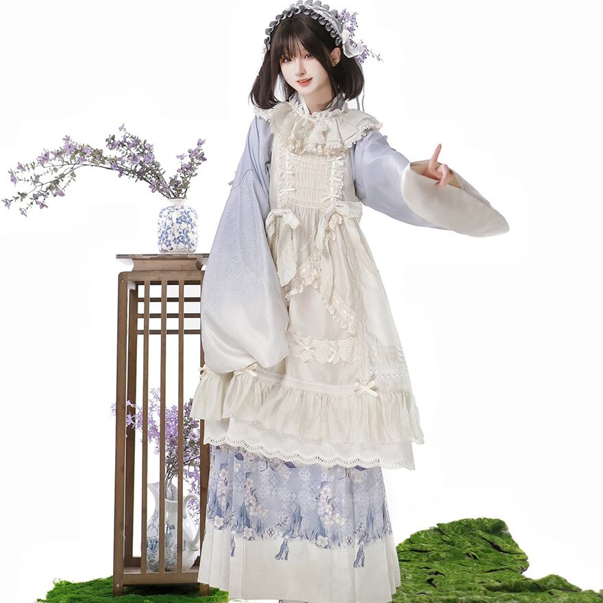 SEASONZ 和装 着物 エプロン リボン スカートカバー レース 秋冬服 メイド服 コンカフェ 大正浪漫 和ロリータ lolita