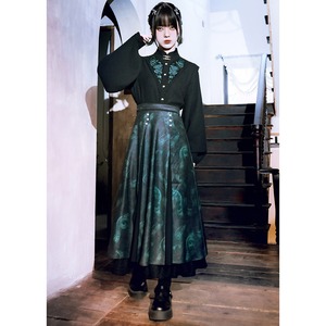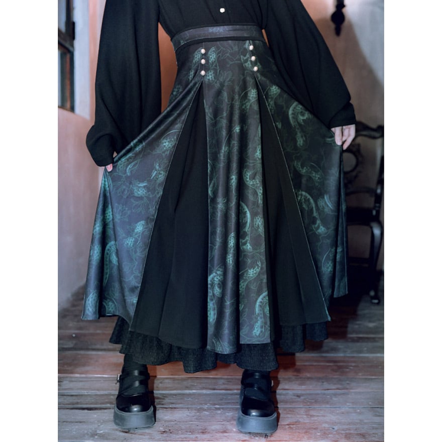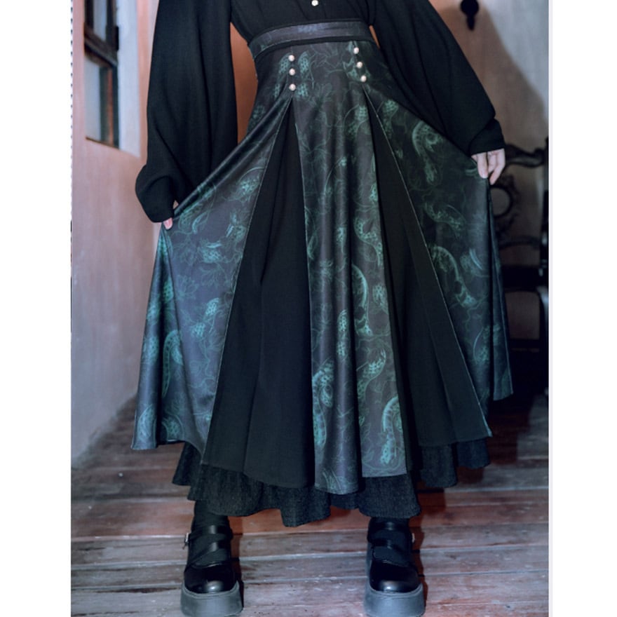 SEASONZ 古怪舎 チャイナ風 スカート 蛇柄 くるみボタン Aライン 秋冬服 ロングスカート レトロ ゆったり とろみ感 大人ゴシック 中華服 民族風 チャイナファッション