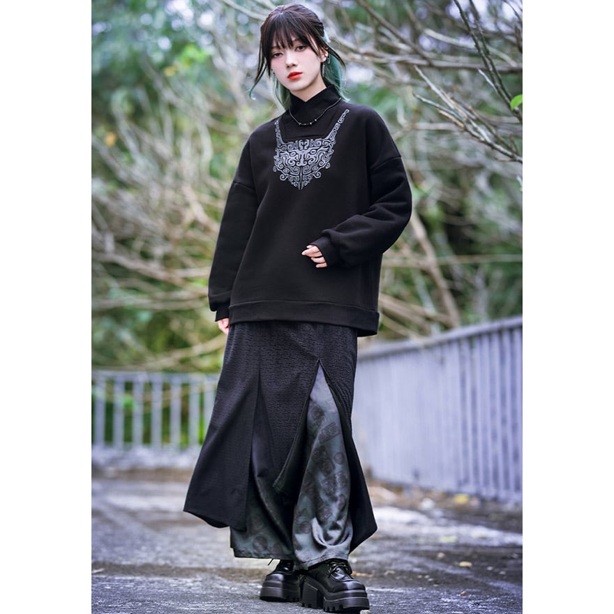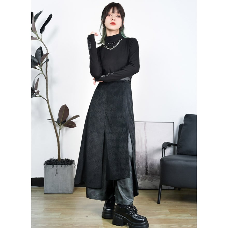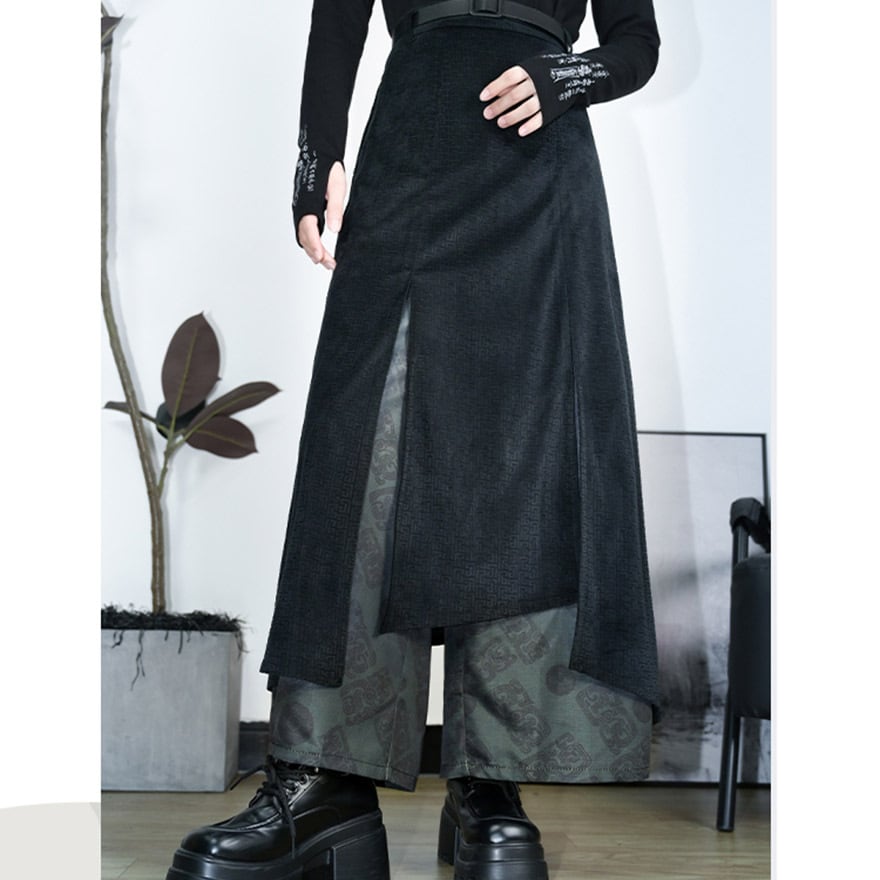 SEASONZ 古怪舎 チャイナ風 ワイドパンツ 重ね着風 レイヤード 袴パンツ 秋冬服レトロ ゆったり とろみ感 大人ゴシック 中華風 チャイナファッション