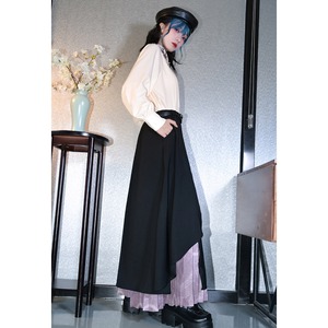 SEASONZ 古怪舎 チャイナ風 スカート キュロット ワイドパンツ 重ね着風 フレア プリーツ レイヤード ロング丈 秋冬服 レトロ ゆったり とろみ感 大人ゴシック チャイナファッション