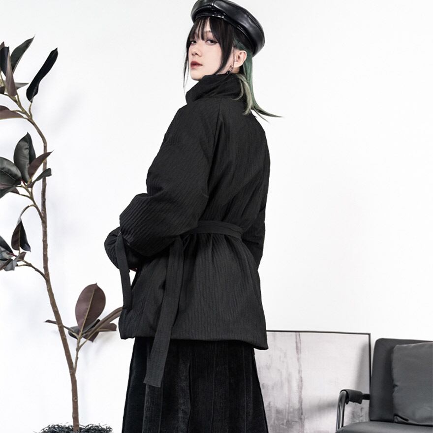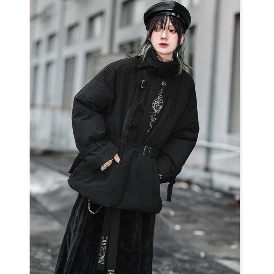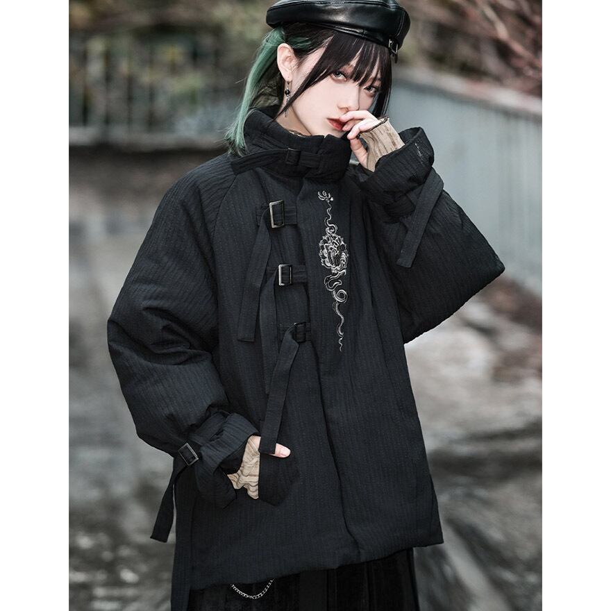 SEASONZ 古怪舎 チャイナ風 ダウンジャケット ハイネック ストラップベルト ZIPアップ 秋冬服 刺繍 レトロ ゆったり とろみ感 大人ゴシック チャイナファッション