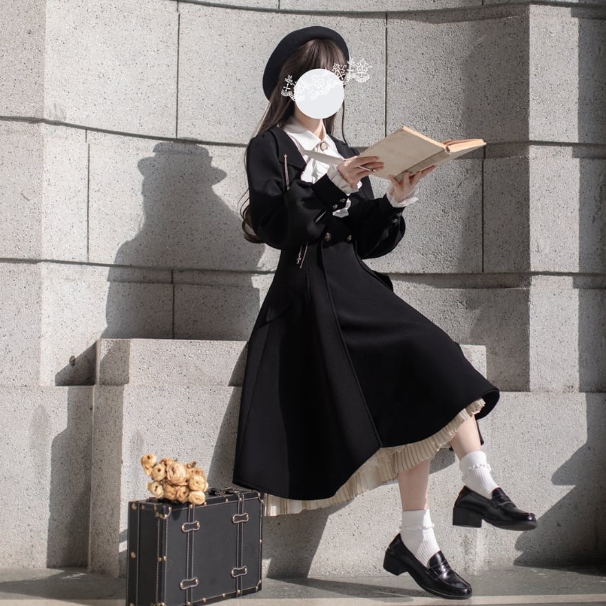 学園風のクラロリお嬢様風フェイクツーピースのロングコートです