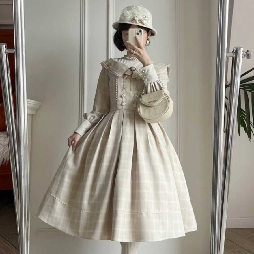 SEASONZ クラロリ 量産型 森ガールワンピース チェック柄 ふんわり 控えめ 原宿スタイル ロリータ服