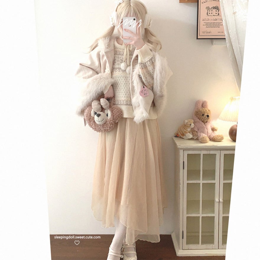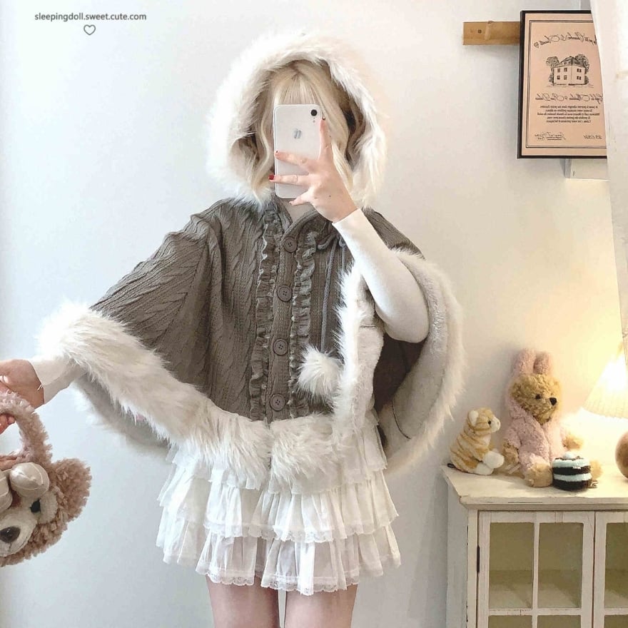 SEASONZ ゆめかわふぁっしょん ショートコート フェイクファー ニット ガーリー ベビードールファッション