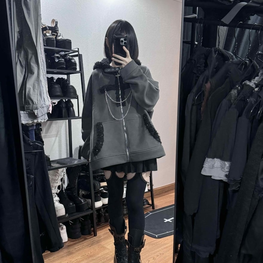 SEASONZ 地雷系 パンク ストリート系 フーディ ジャケット 猫耳 ZIPアップ 原宿スタイル 地雷系女子