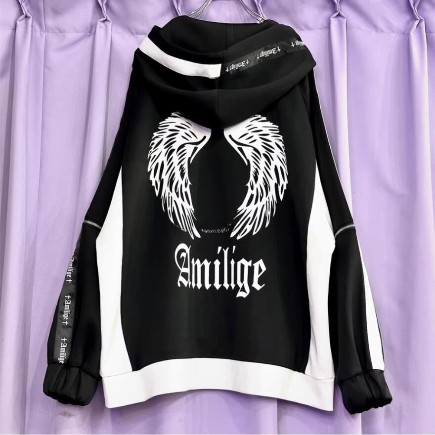 取り外し可能なフードと袖スリーブの地雷系フーディです。