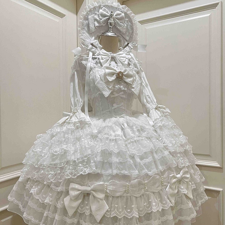 SEASONZ 甘ロリ 夢かわいい ふわふわ ドレス バックリボン レース 姫袖 プリンセス シンデレラ 姫ワンピ お嬢様ワンピ エレガント