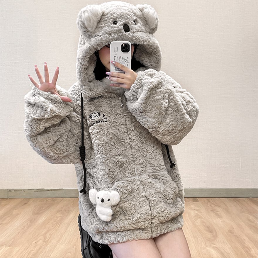 SEASONZ 地雷系 パンク フーディ コアラ フード付き ぬいぐるみ ふわふわ ZIP もふもふ くまちゃん 暖かい オーバーサイズ
