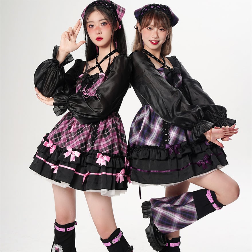 SEASONZ キラキラ アイドル系 ワンピース 長袖 リボン ホルターネック ステージ衣装 チェック柄 双子コーデ イベント衣装