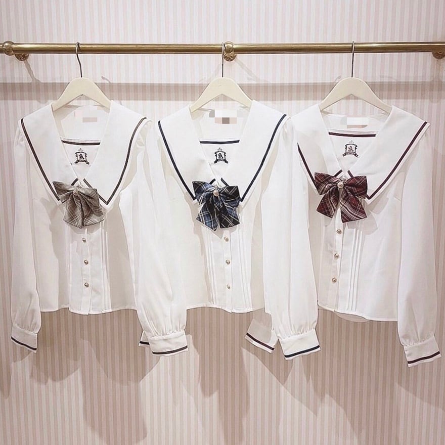 SEASONZ 量産型 長袖シャツ ブラウス カレッジスタイル チェック柄リボン セーラー風 甘い ガーリー