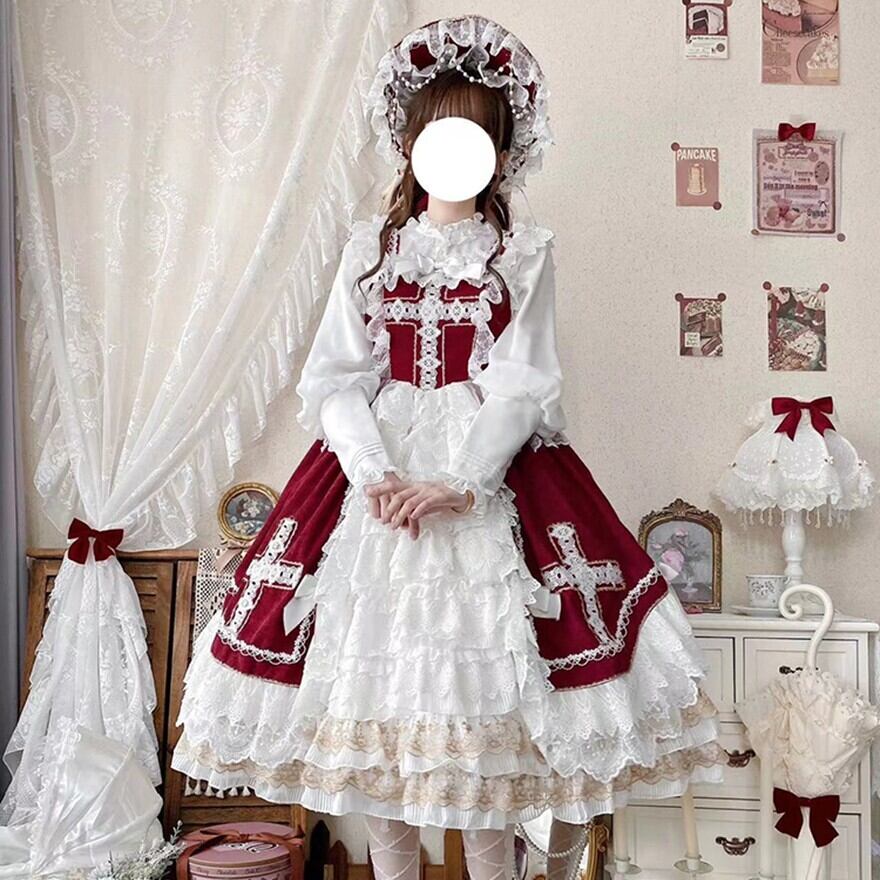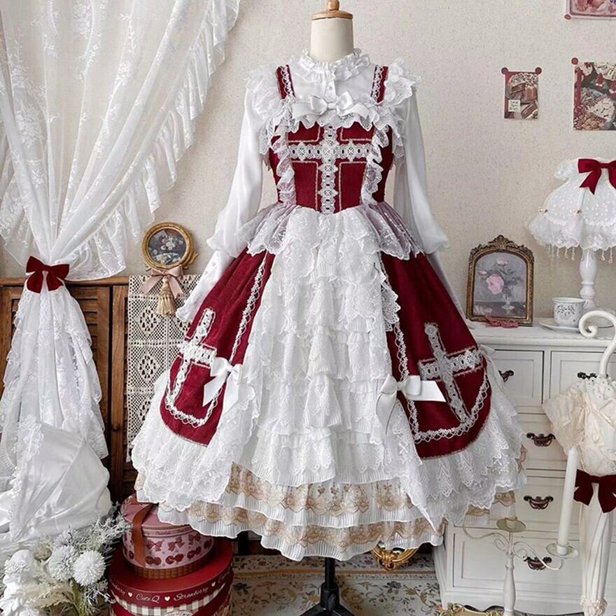 SEASONZ ゴスロリドレス レース ジャンパースカート フリル 可愛い 上品 エレガント パーティ イベント お茶会 撮影会衣装