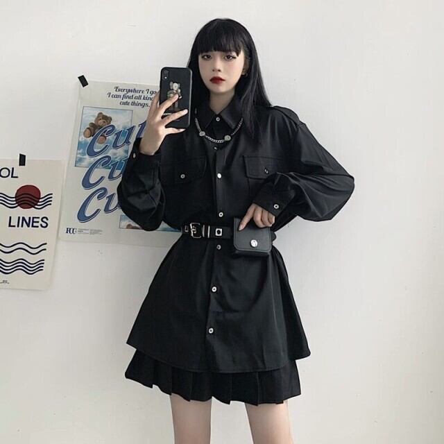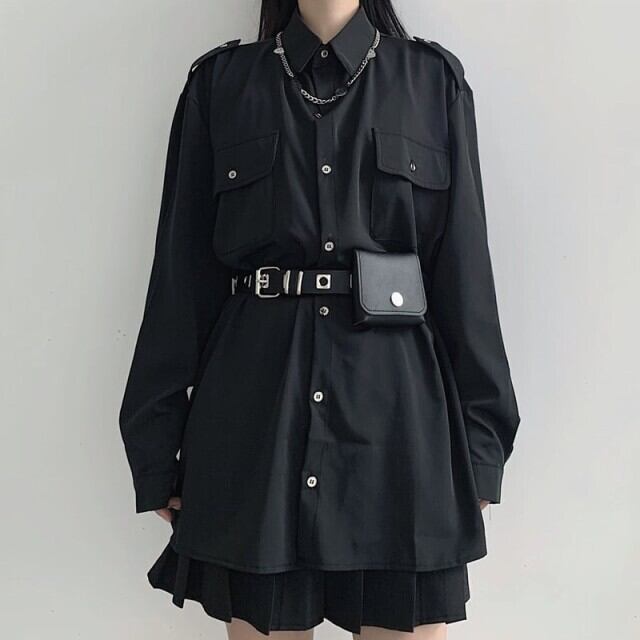 SEASONZ 地雷系 黒シャツ フラップポケット ハードガール 病み可愛い