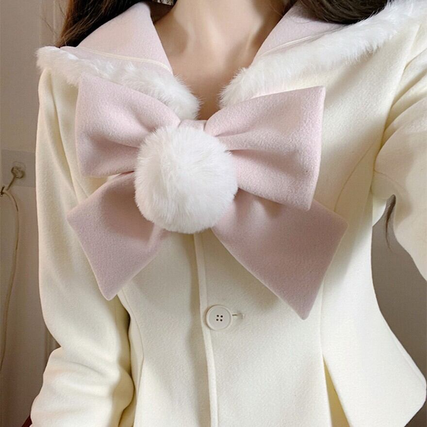 取り外し可能なリボンアイテムが付いたウールのトップスと短いスカートをセットにしました。
