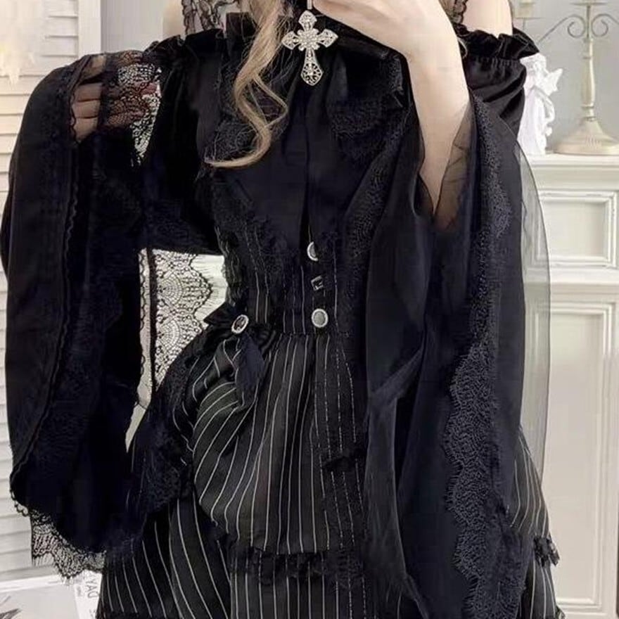 SEASONZ 地雷系 甘辛ミックス 地雷コーデ ブラウス 姫袖 レース フリル 病み可愛い ダークファッション レトロ 地雷系ファッション 量産型