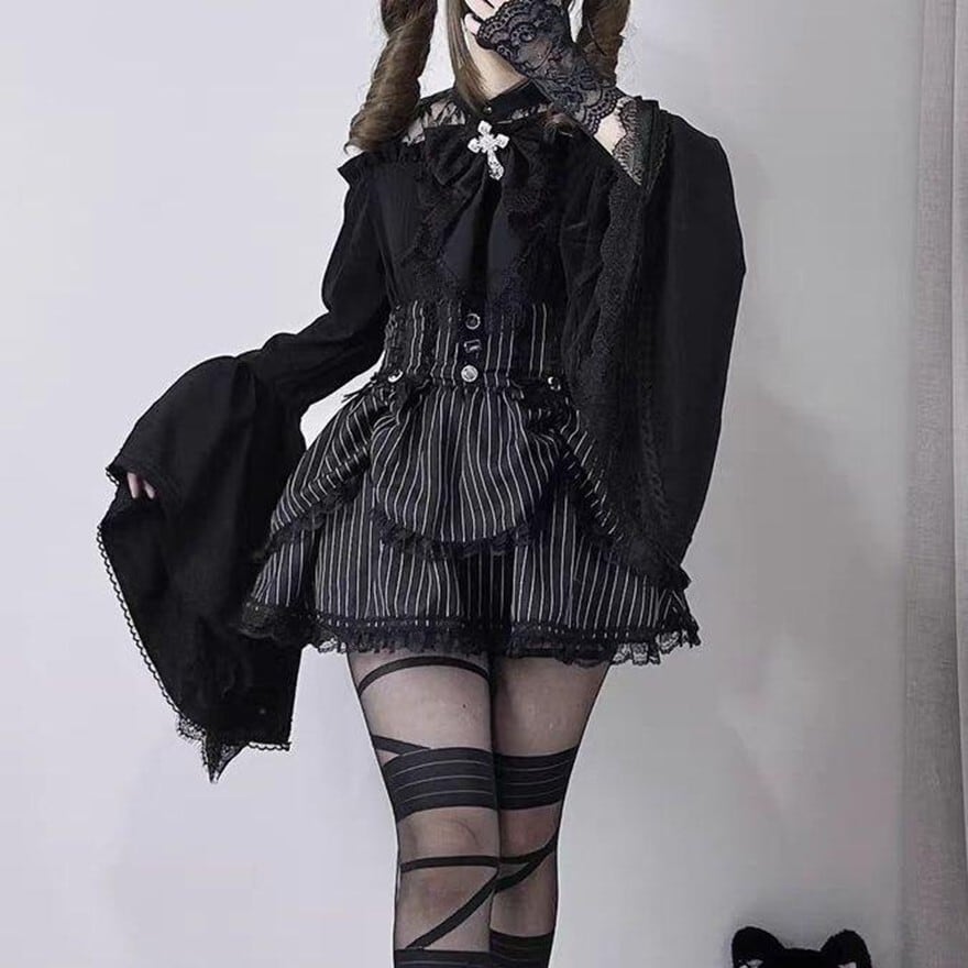 ふんわりと広がる姫袖が、あなたの地雷系ファッションをより一層華やかに彩ります。