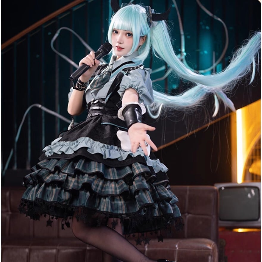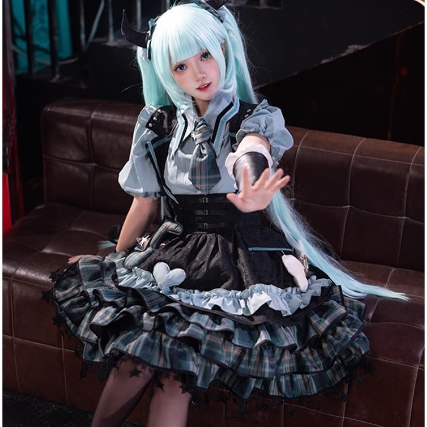 SEASONZ アイドル衣装 ステージ 舞台衣装 セットアップ レイヤード チェック柄 ふわふわ スカート イベント コンカフェ衣装 アイドル服